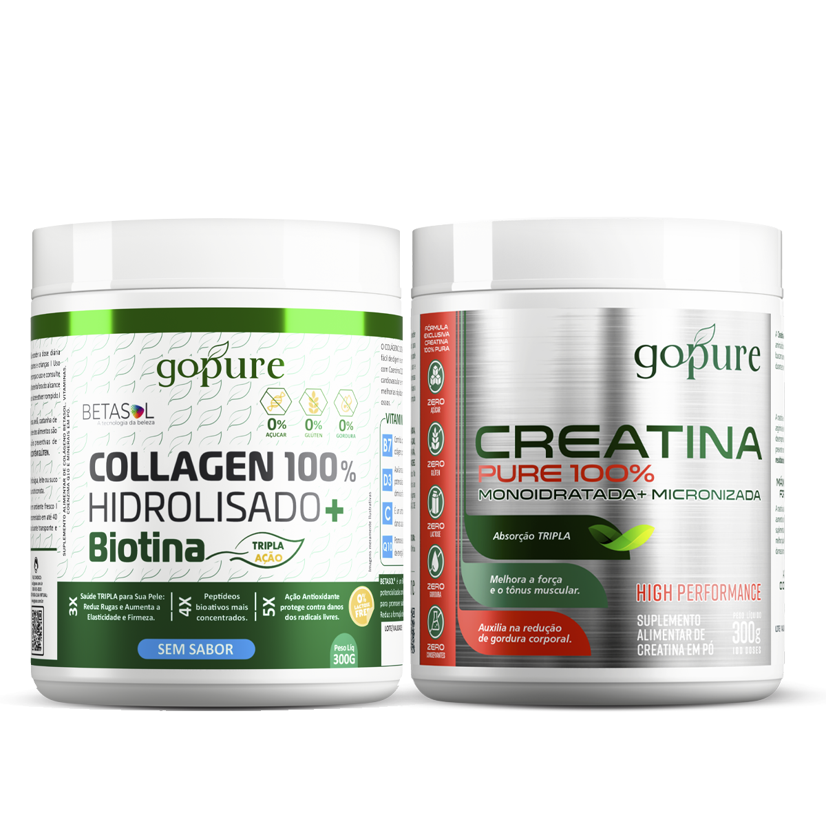A escolha definitiva para transformar sua saúde e beleza! Enriquecido com uma poderosa mistura de minerais e vitaminas. incluindo Biotina (B7), Vitamina C e Vitamina D3, o Colágeno da GoPure, tanto em pó como em cápsulas, é o complemento essencial para sua rotina diária.