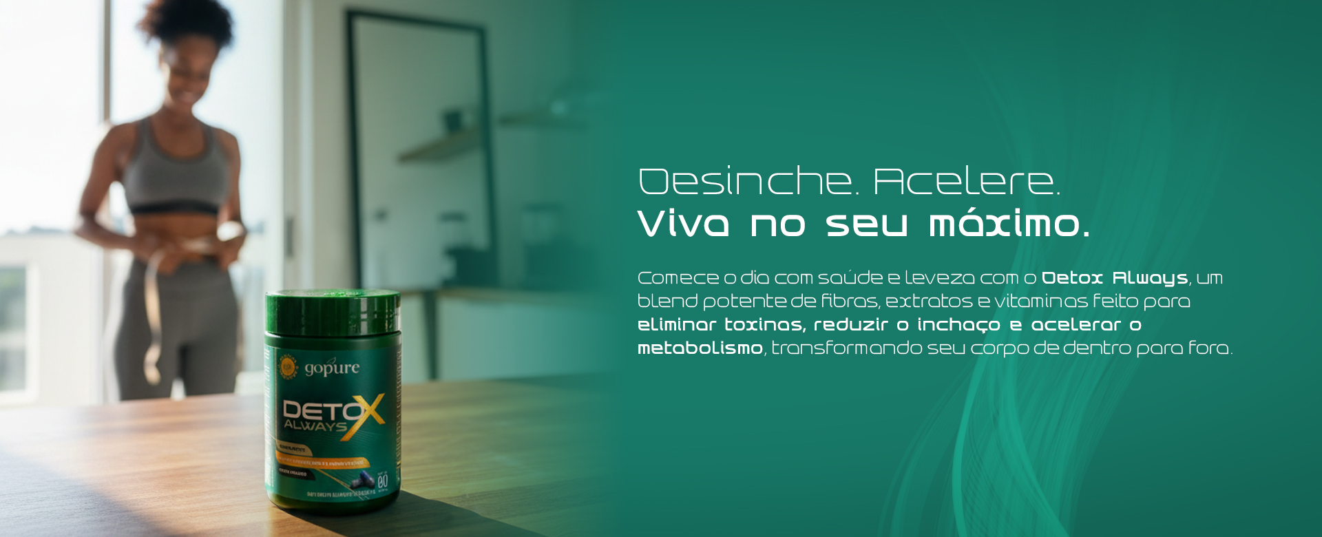 Comece o dia com saúde e leveza. Detox Always acompanha sua rotina com uma fórmula avançada, rica em ativos naturais que promovem bem-estar de dentro para fora.