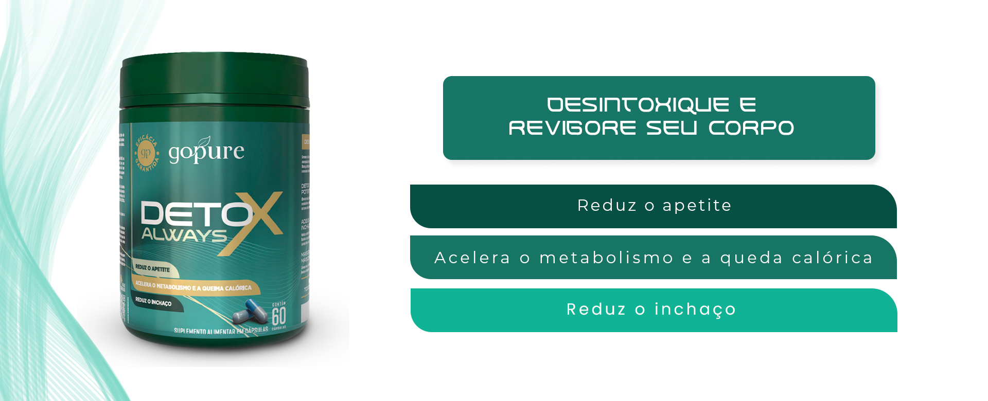 Compre 1, LEVE 2 - Detox Always GoPure – Suplemento p/ Reduzir Apetite, Desinchar, Perda de Peso, Emagrecimento
