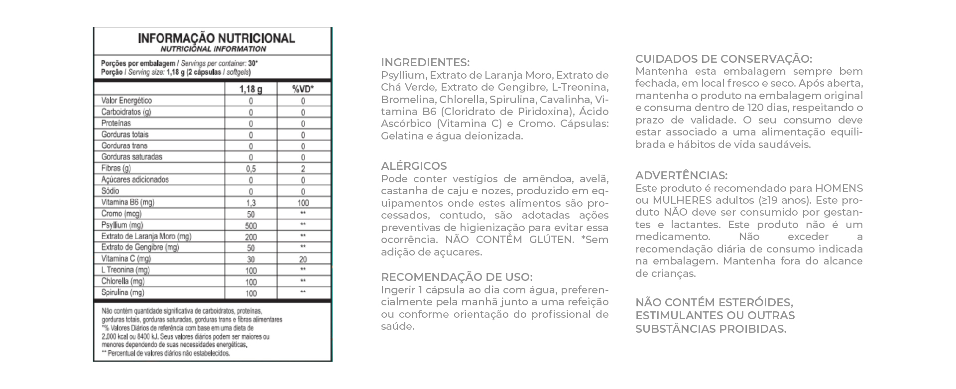 🔥 Um blend potente com fibras, extratos e vitaminas na dose certa para auxiliar na sensação de leveza, apoiar o metabolismo, ajudar na redução de inchaço e contribuir para a energia ao longo do dia!