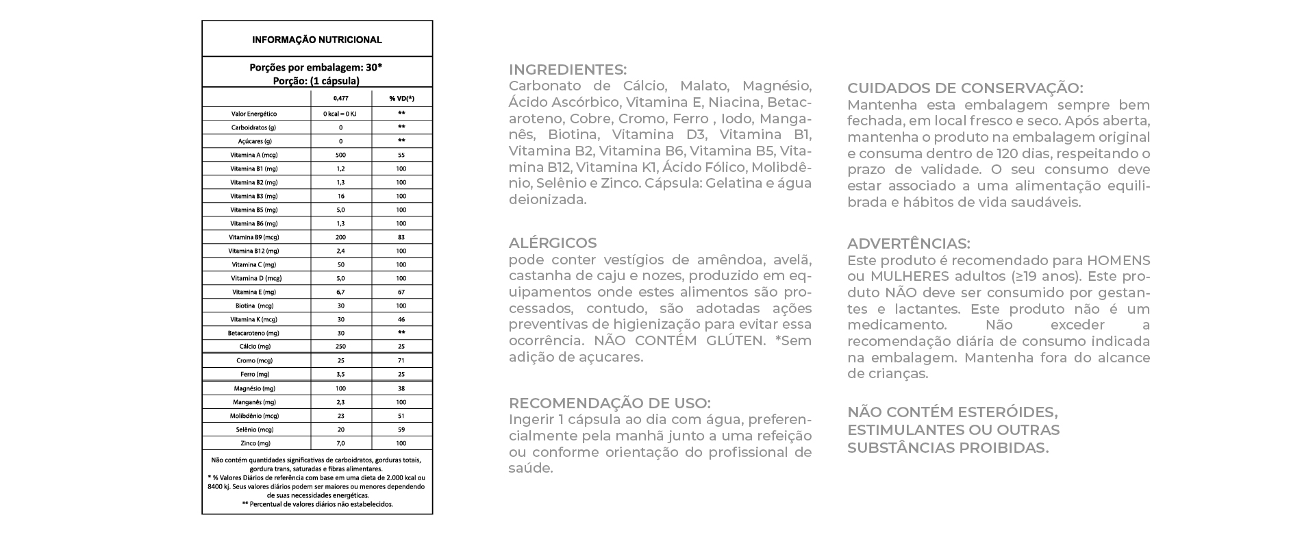Suplemento alimentar formulado com vitaminas e minerais essenciais, desenvolvido para apoiar a saúde do homem.