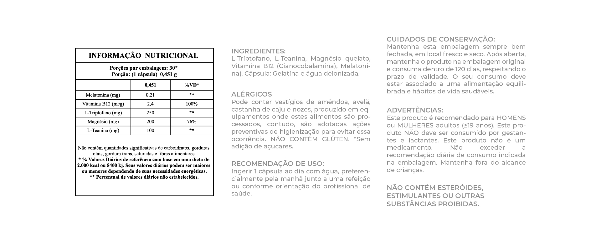 Atua em conjunto com a produção natural de melatonina e serotonina, ajudando você a manter uma rotina de descanso equilibrada
